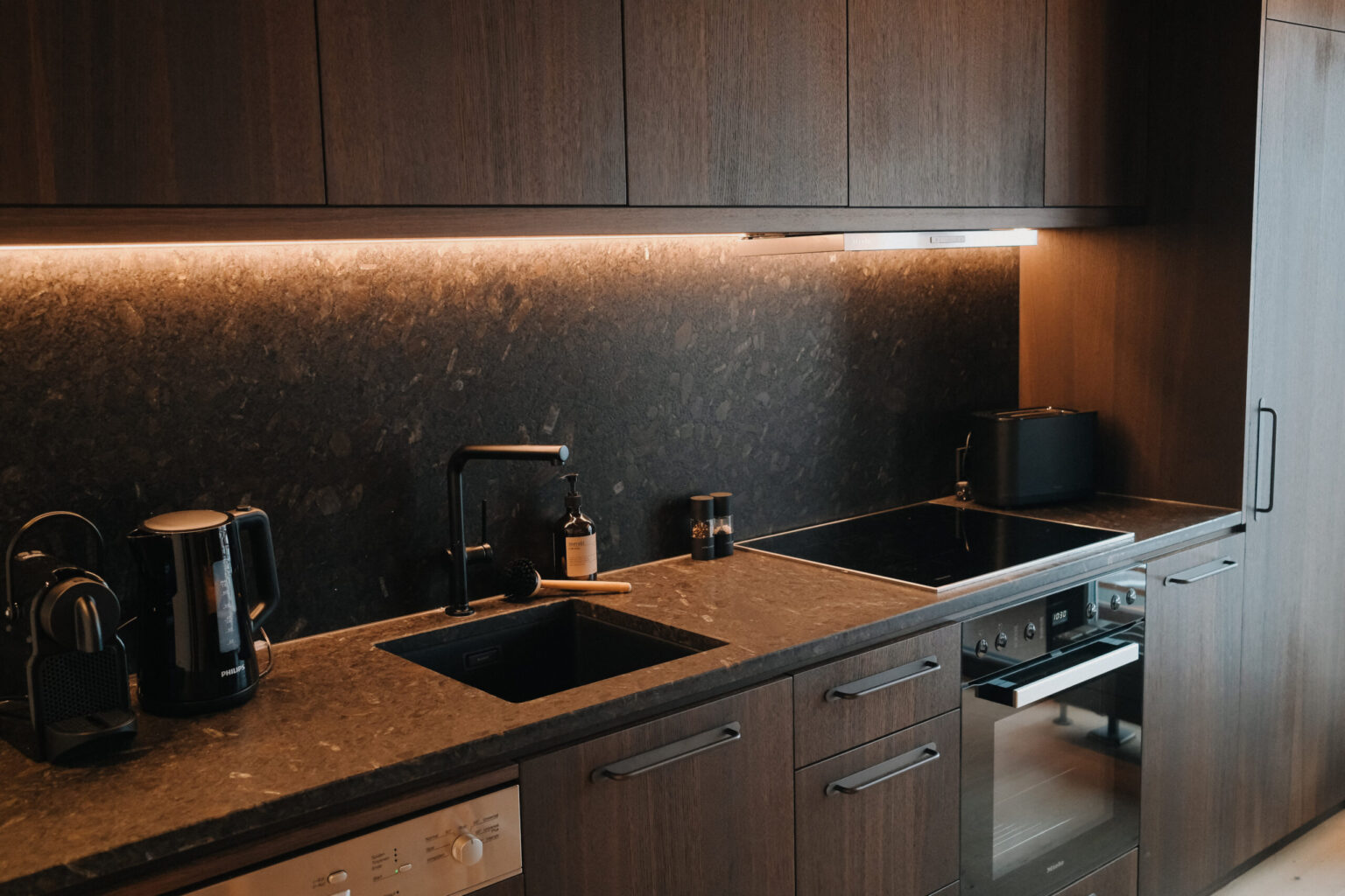New apartment with balcony, 3 bedrooms each with double bed and TV, 2 bathrooms with shower/WC, fully equipped kitchen with kitchenette (fridge, 4 hotplates, oven, dishwasher, Nespresso coffee machine, kettle), dining area and lounge area with cosy couch corner and TV.